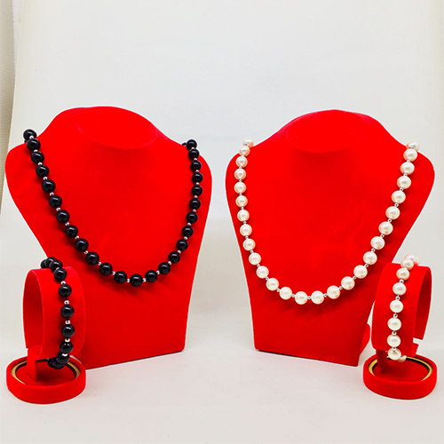 Satu set kalung dan gelang yang memiliki varian warna putih dan hitamm. Bukan sekedar perhiasan, juga sebagai alat bantu kesehatan karena untaian mutiara dipadukan dengan Neodimium Magnet yang memiliki manfaat Terapi Bio Magnetik. Therapeutic Bio Pearl memiliki manfaat ganda: Psikis dan Fisik.